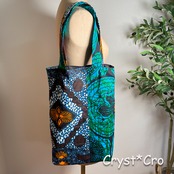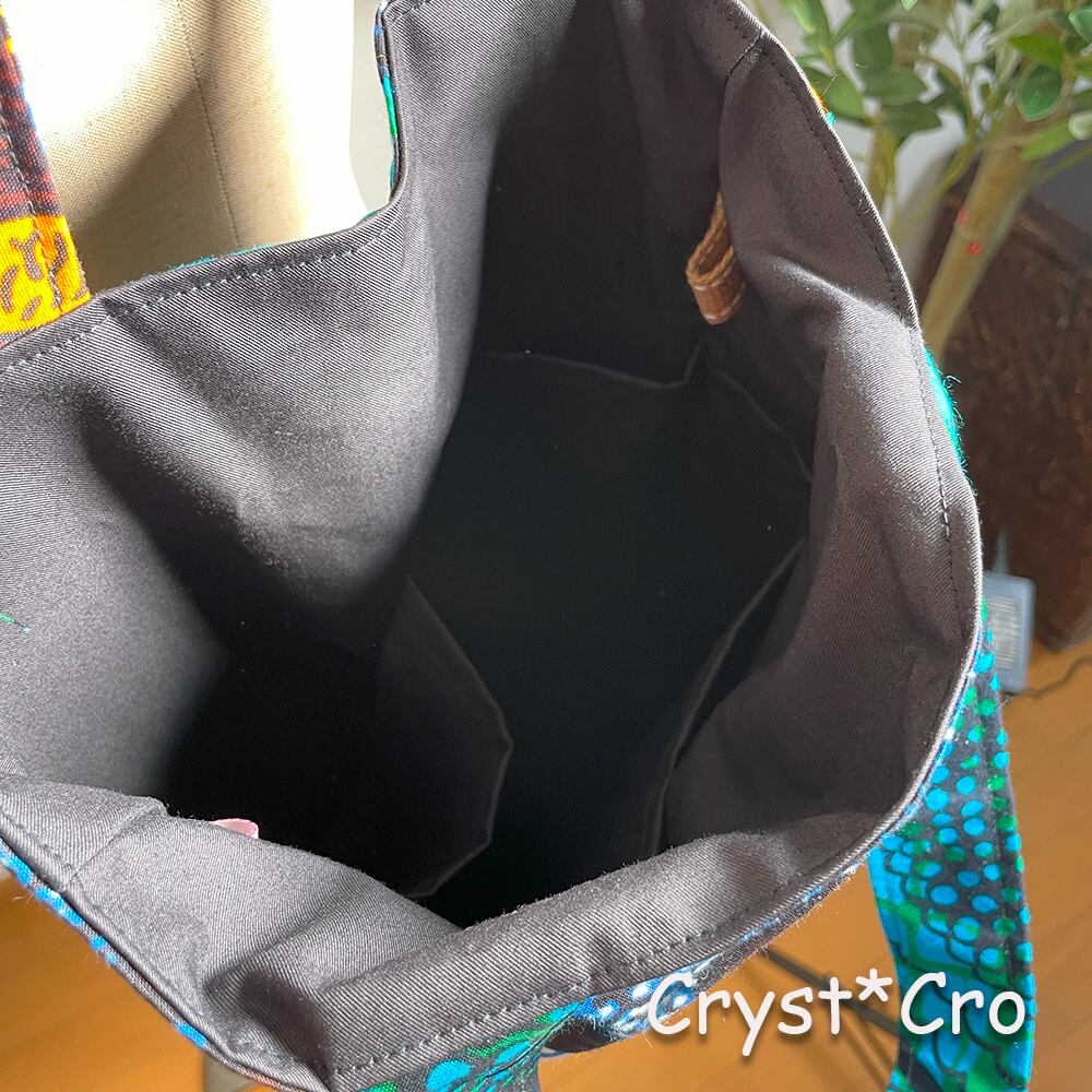110K-143 『サンバードと太陽とちょうちょ』(青×黒)×1 10K-134 『貝がらコラージュ』(青×オレンジ)アフリカンファブリック ショルダー A4サイズ スポーツジム レッスンバッグ ショッピング