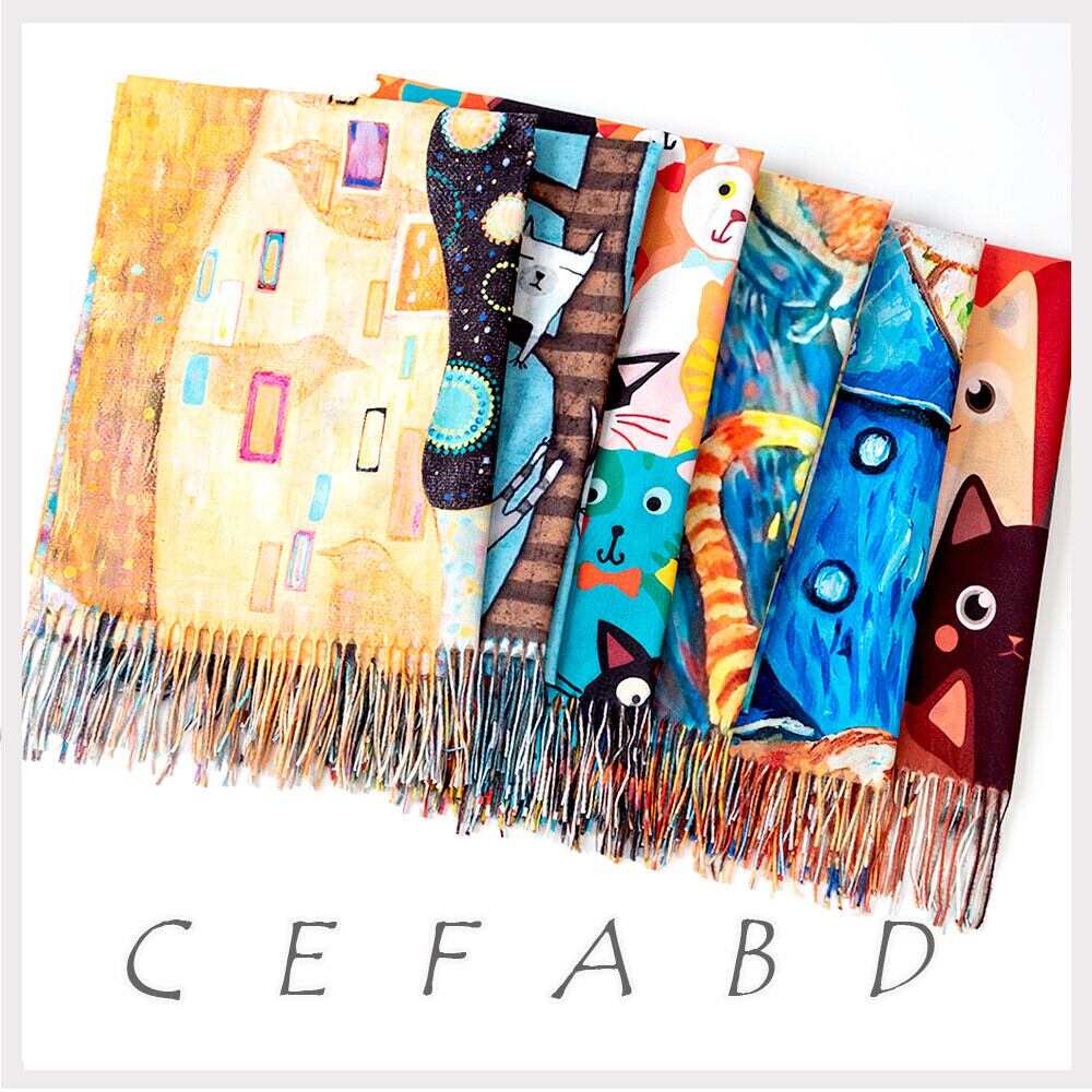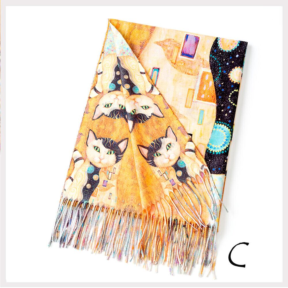 ソフトな手触り 癒しの猫プリントストール プレゼントにも最適な大判ストール