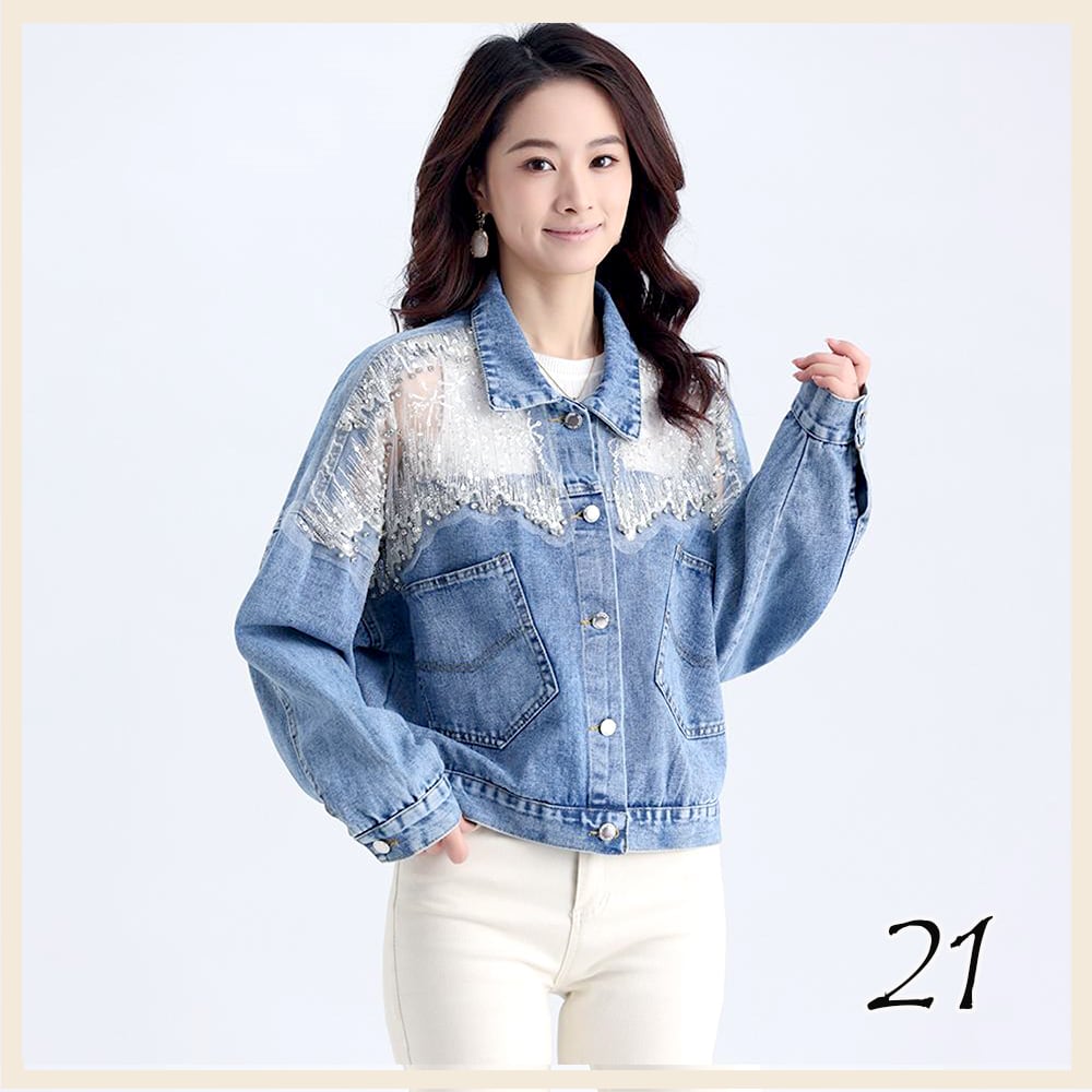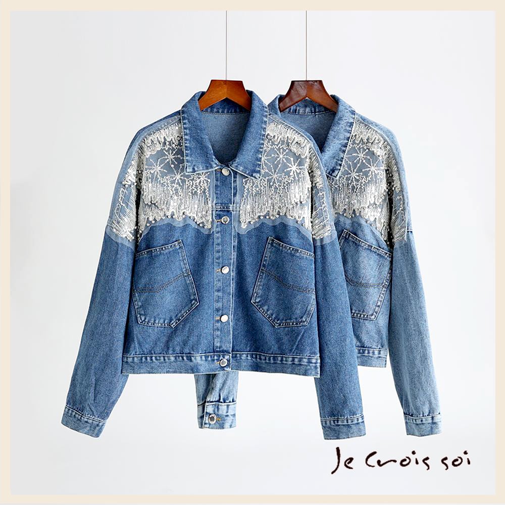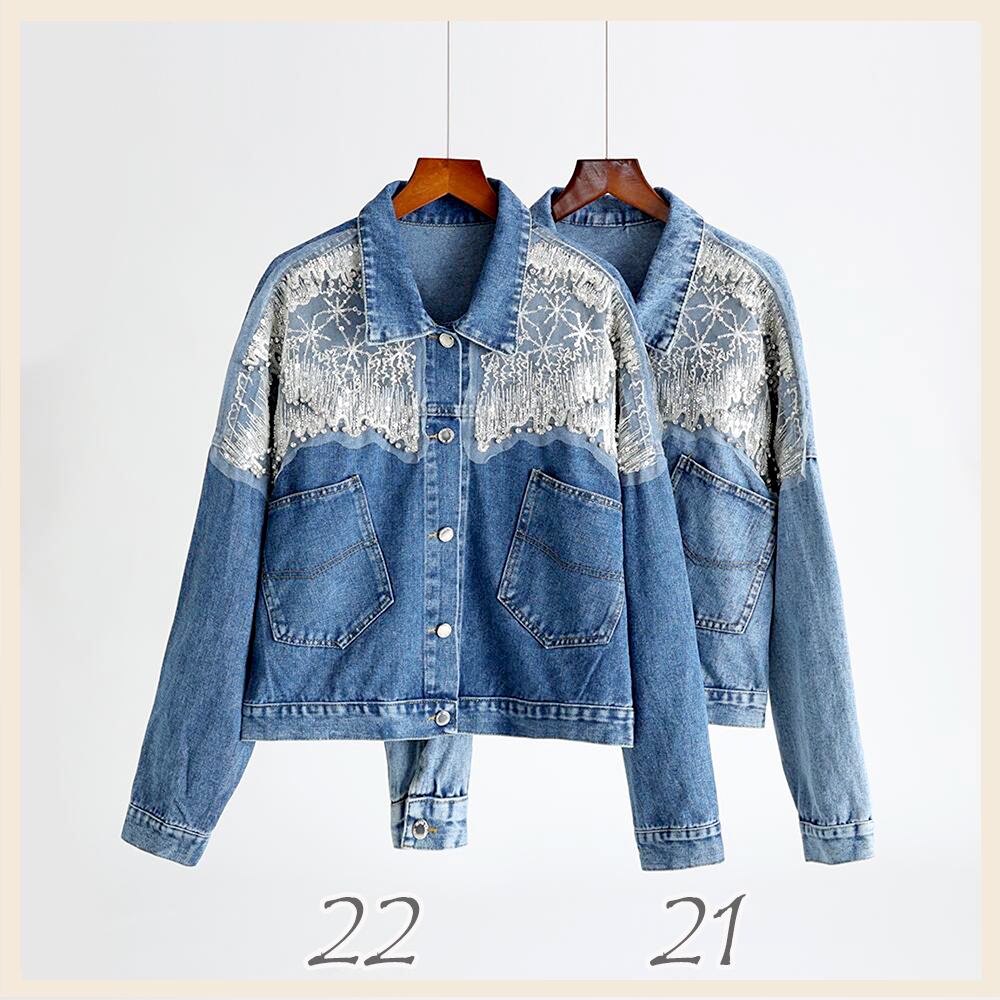 このレースパッチワーク・キラキラビジューのデニムジャケットは、個性的なデザインと高品質な素材で人気の一枚です。キラキラビジューと刺繍が施されたデニム地は、華やかさとカジュアルさを両立させたアイテムです。